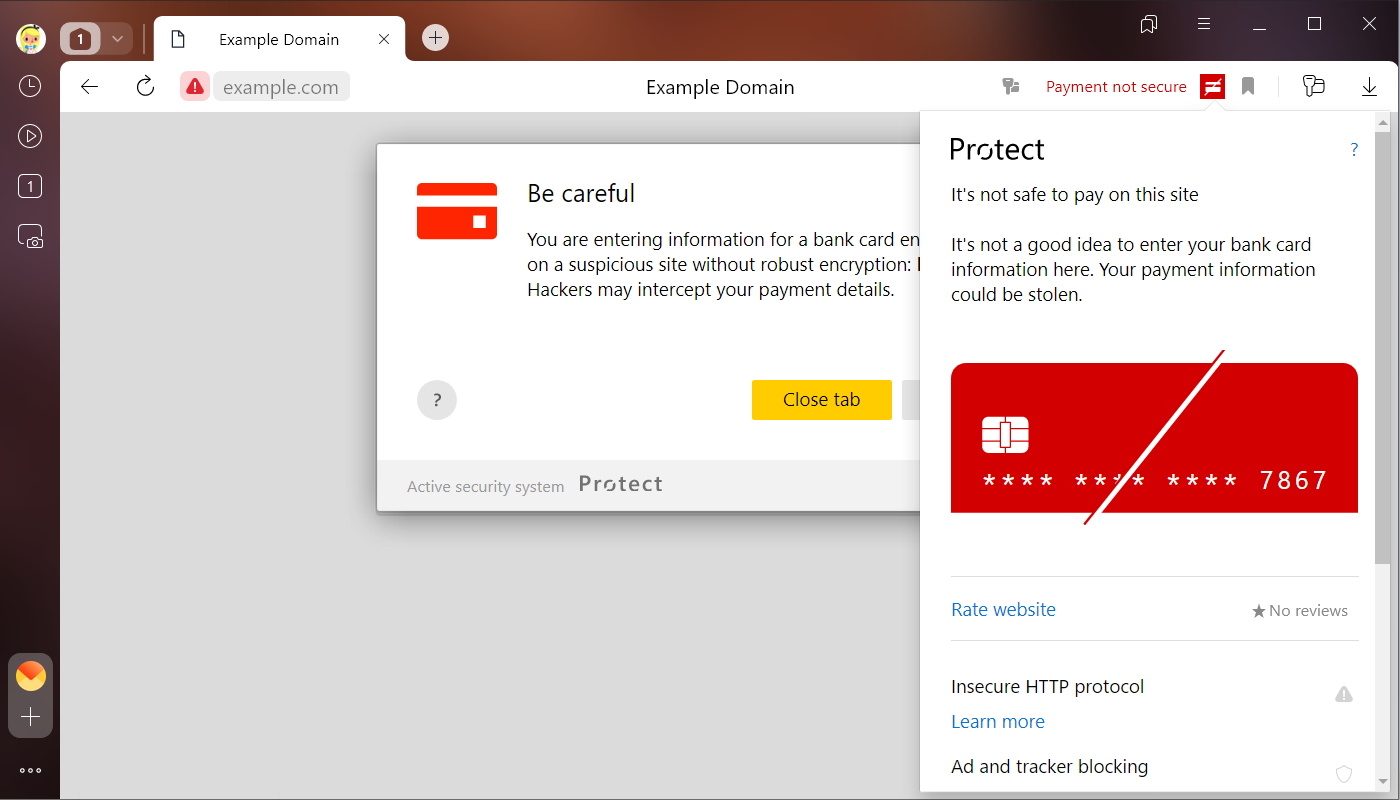 When you enter your bank card number, there are two types of warnings that Yandex Browser may display: