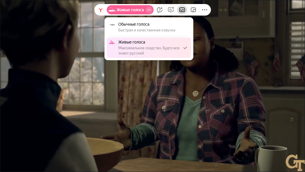 Живые голоса — продвинутый перевод с естественными голосами и интонациями. Подходит для просмотра фильмов, сериалов или роликов любимых видеоблогеров.