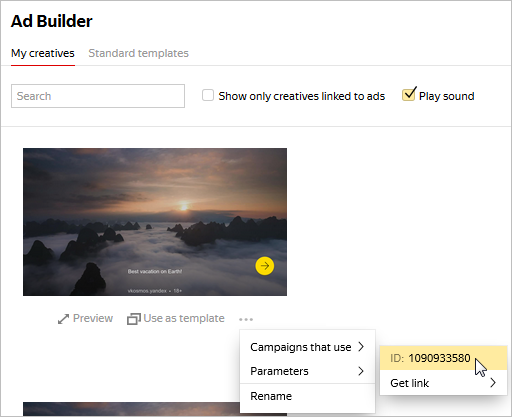 The option is available for a unified performance campaign (only for combinatorial, Text & Image ads, and image ads).