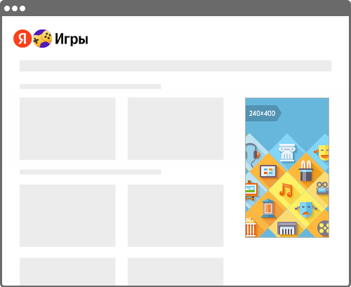 Banners are placed on Yandex Games as part of packaged ad placement on Yandex services. Banners on these ad platforms reach a wide audience with a wide range of interests.