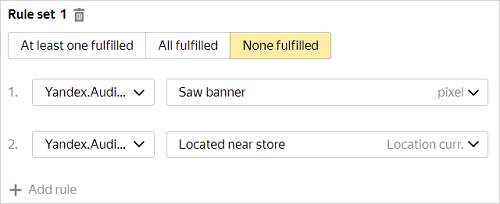 4. Use your created segment to configure user profiles (in a display campaign or a display campaign with deals) or retargeting lists (in contextual ad campaigns), or bid adjustments.