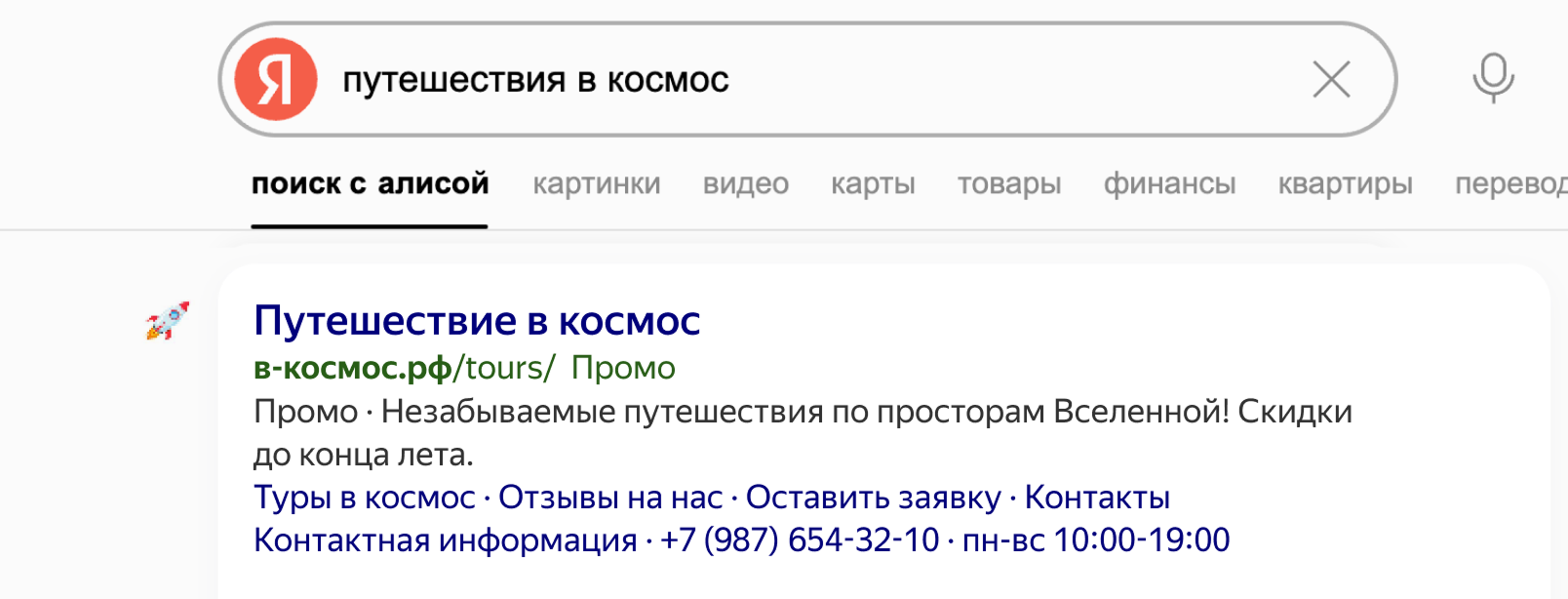 Расскажите пользователю, почему стоит выбрать именно ваше предложение. Укажите конкурентные преимущества: скидки, акции, условия доставки, гарантию и т. д. Стоимость товара или услуги обозначит ценовой сегмент и исключит нецелевые клики. Название фирмы привлечет внимание, если бренд известный и узнаваемый. Важно, чтобы информация в объявлении была достоверной и подтверждалась на сайте. Если пользователь не сможет сразу найти то, о чем шла речь в объявлении, он уйдет с сайта.