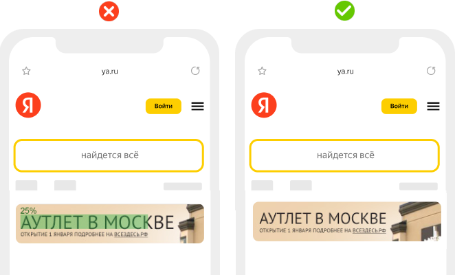 Баннер не должен содержать стандартные элементы пользовательского интерфейса (курсор, поисковая строка, различные кнопки и т. п.), которые не выполняют соответствующие функции.