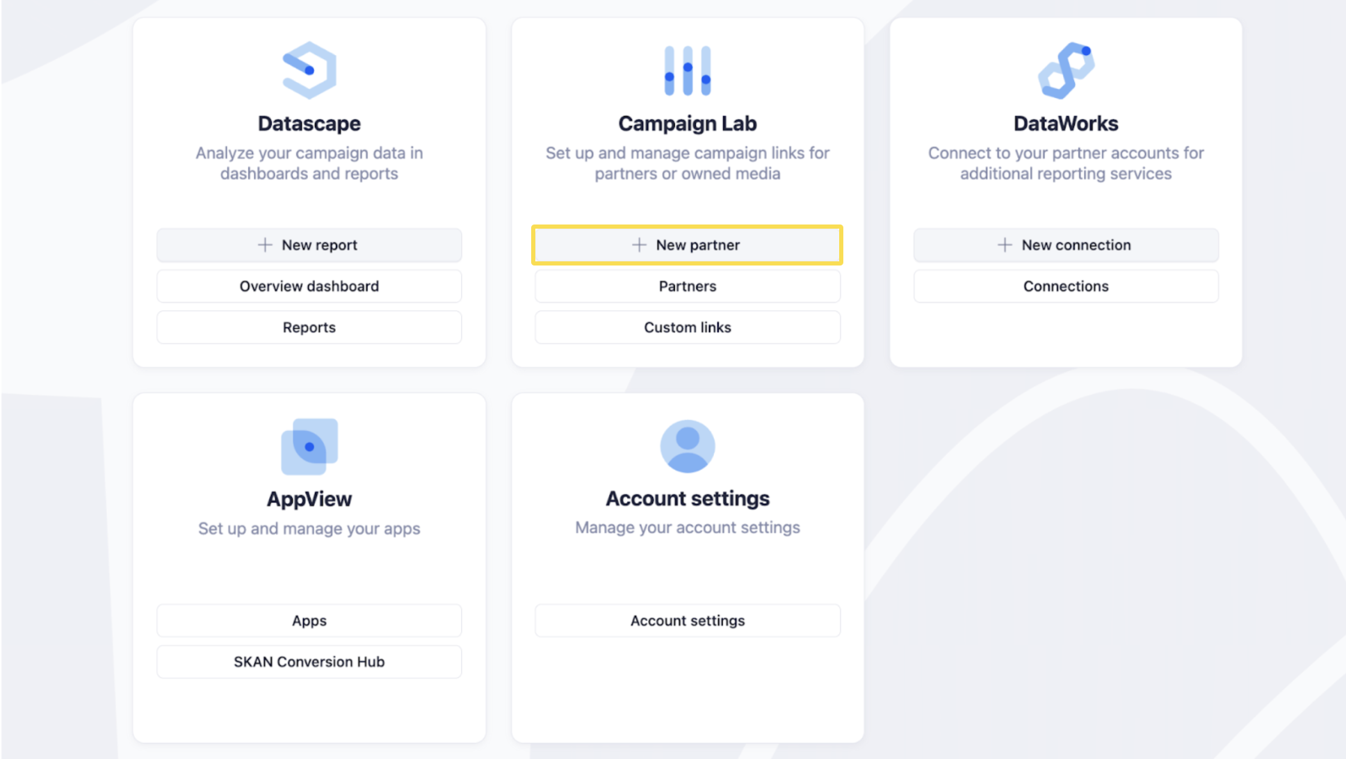 На главной странице в блоке Campaign Lab нажмите New Partner.