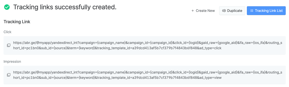 Полученная трекинговая ссылка потребуется при запуске продвижения: