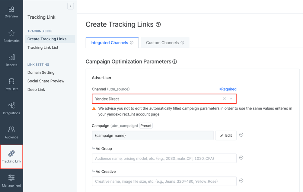 Чтобы получить трекинговую ссылку, выполните следующие шаги: