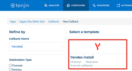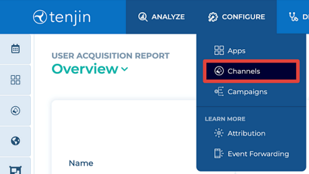 В интерфейсе Tenjin перейдите в раздел CONFIGURE → Channels.