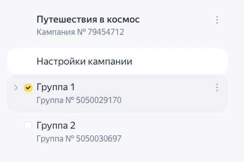 1. На странице Мои кампании выберите кампании и перейдите на вкладку Группы.