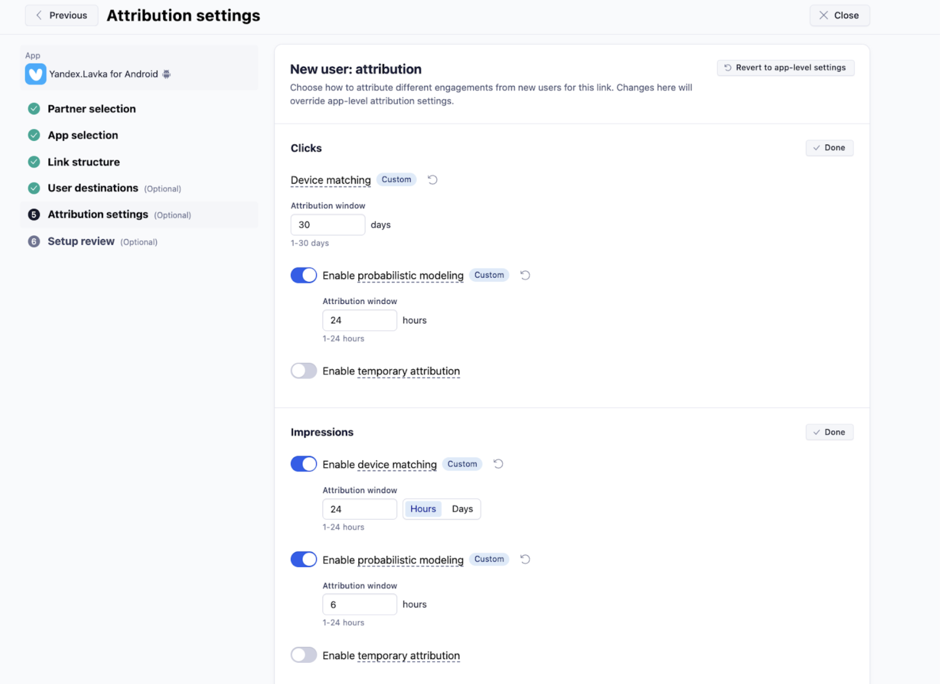 İlgili bölümde, Attribution Link sekmesinde izleme bağlantısı oluşturun.