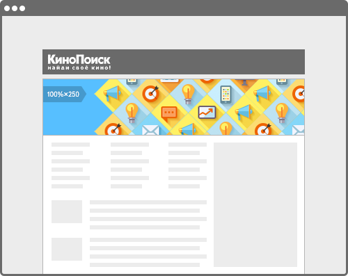 在KinoPoisk上投放横幅包含在媒体服务广告套餐中。 这些广告平台上的横幅会吸引兴趣广泛的广大受众。