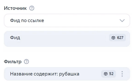 当您设置筛选器参数时,Yandex Direct 会实时检查有多少产品符合所选条件。 使用 Yandex Direct 的建议,以避免因没有产品符合筛选条件而导致广告停止的情况。