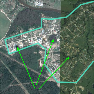 - yerleşim yeri bir nehir kıyısında yer alırsa sınırının, uydu görüntüsünde inşaat bölüm hatlarının ayırt edilemez olduğu durumlarda, nehir yatağı kıyısından veya ortasından geçirilmesine izin verilir;