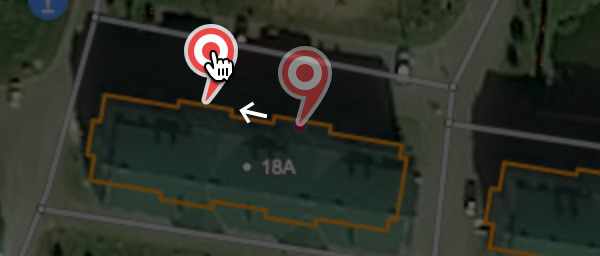 Eklenen bina girişi haritada kırmızı noktayla gösterilir: