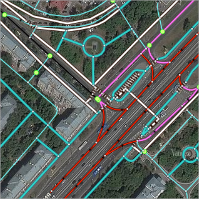 Altyapı: standart. Trafik ışıkları ve trafik kuralı ihlallerinin tespiti için kullanılan izleme kameraları yalnızca büyük ölçekli (ölçeği en az 18 olan) haritalarda gösterilir, 18'den küçük ölçekli haritalarda gösterilmez: