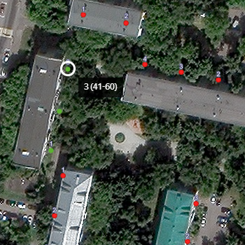 Bina girişleri: Daire numaraları Bina girişleri haritada farklı renklerle (nitekim, en az bir daire numara aralığının belirlendiği girişler yeşil ve hiçbir daire numara aralığının belirlenmediği girişler kırmızı olmak üzere) gösterilir