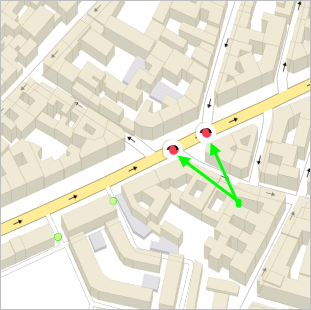 Posta koduyla bağlantı. Adres noktaları ve posta kodları haritada bağlantılı olarak gösterilir. Posta kodu noktası seçildiğinde buna bağlı adresler haritada gösterilir: