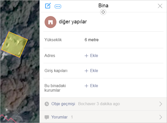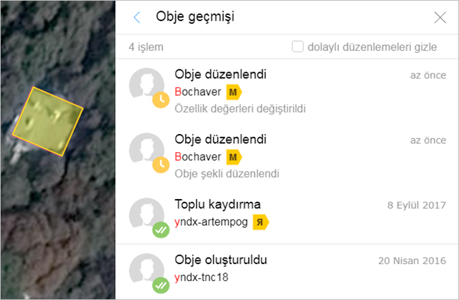 Haritadaki her objenin oluşturulma ve düzenlenme geçmişi bulunur.
