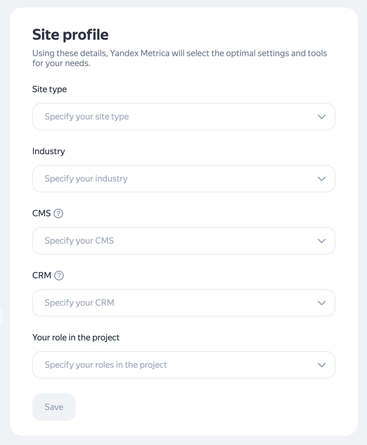 The data you specify is used for interface personalization and to offer you recommendations for configuring analytics tools: