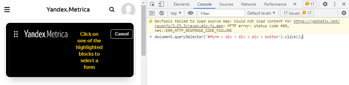 document.querySelector('xxxx').click();, wherexxxxis the value you copied. If everything is done correctly, the desired form is highlighted on the page.