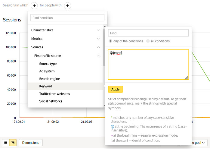 Yandex Metrica finds queries using the referrer and browser cookies and does not detect them if: