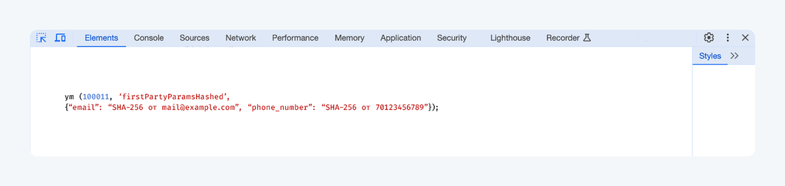 En este caso, solo la dirección de correo electrónico y el número de teléfono que el usuario completó en el formulario de su sitio se transmiten a Yandex Metrica en forma cifrada.