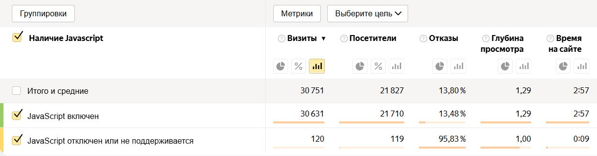 Узнать соотношение посетителей с включенным и выключенным JavaScript