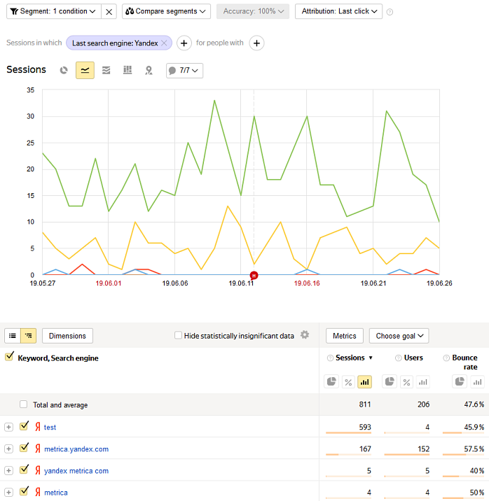 Rapor, Yandex Metrica'da kullanılabilen tüm ayarları destekler.