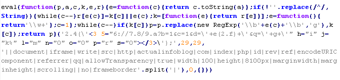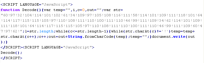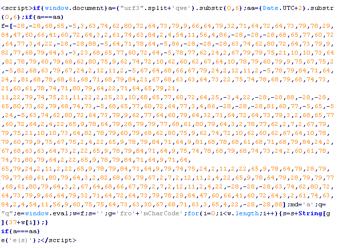 Example of malicious code that is issued the verdict Troj/JSRedir-GS: