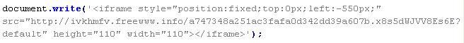 Example of malicious code that is issued the verdict Troj/JSRedir-MX:
