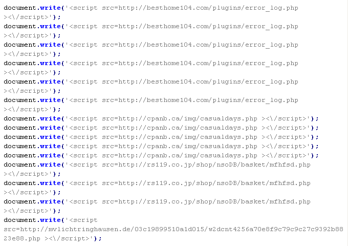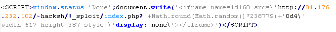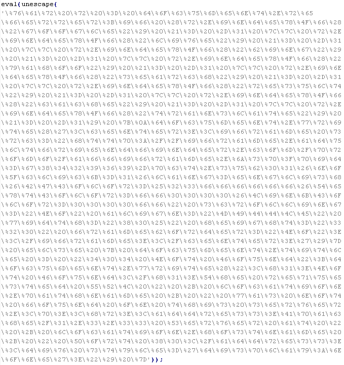 Troj/JSRedir-DL kararının verilmesine yol açan kötü amaçlı kod örneği: