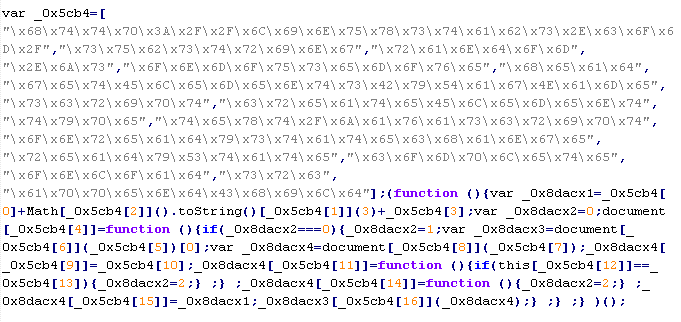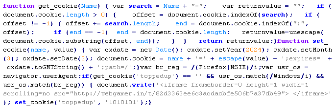 Bu karar, sayfanın fare hareket ettirildiğinde kötü amaçlı yazılım içeren bir betiği yükleyen gizlenmiş JavaScript kodu içerdiği anlamına gelir. Bu kod, web sitesindeki .js uzantılı tüm dosyalara eklenir.