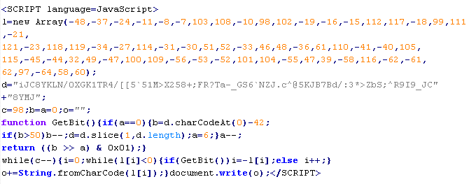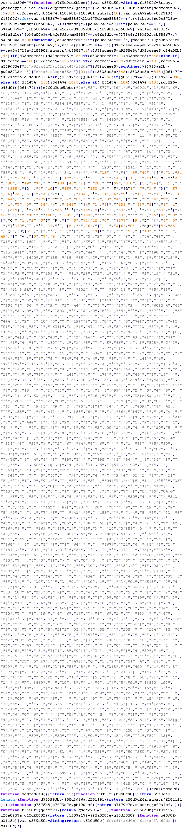 Troj/ObfJS-O kararı verilen kötü amaçlı kod örneği: