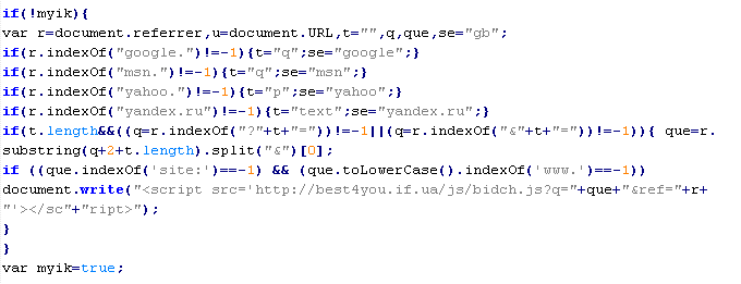 Yandex/MalTds kararı verilen kötü amaçlı kod örneği: