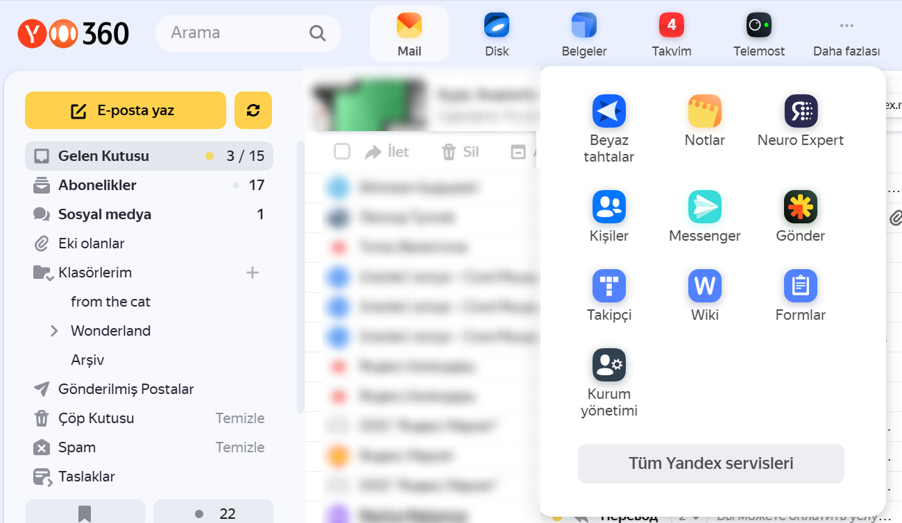 - Yandex Takvim aracılığıyla randevu veya toplantı düzenleme,