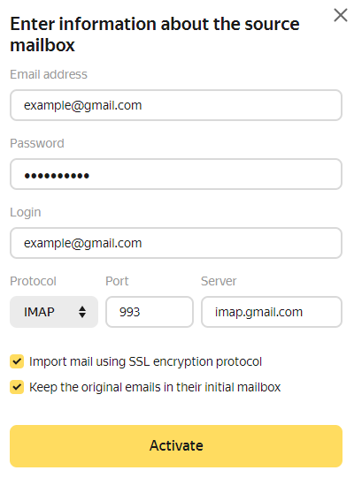 Takip eden adımları Gmail’in ve Yandex Mail’in tam sürümlerinde yerine getirin (sitede, mobil sürümde veya mobil uygulamada değil).
