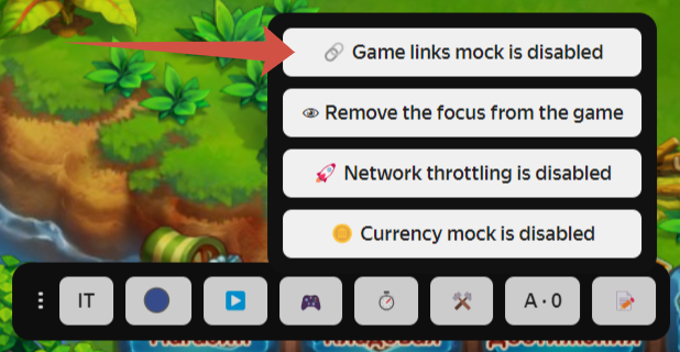 Ekranın sol alt köşesinde SDK mocks ⚒️ butonuna basın ve 🔗 Game links mock is enabled seçeneğini seçin.