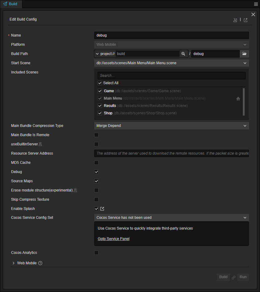 Ayarları yapılandırın. Hata ayıklamayı kolaylaştırmak için genellikle Kaynak Haritaları ve Debug öğelerini etkinleştirmeniz önerilir.
