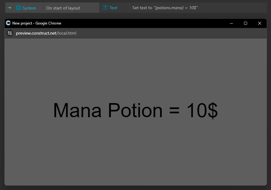 Ayrıca, Construct 3'ün yerel olaylarında ve diğer yerlerde çeviri anahtarlarını kullanabilirsiniz.