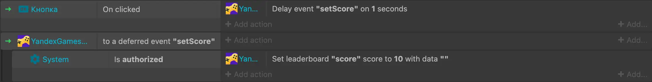 Onlar arasındaki ana fark, Not more than once in <X> seconds çağrı sıklığını sınırlarken, On a deferred event fonksiyon çağrısını belirli bir süre erteler, ve bu tam olarak bize gereken şeydir, çünkü puanı tabloya gönderme durumunda, fonksiyonu çok sık çalıştırmamız gerekmez, sadece sınıra uymamız yeterlidir.