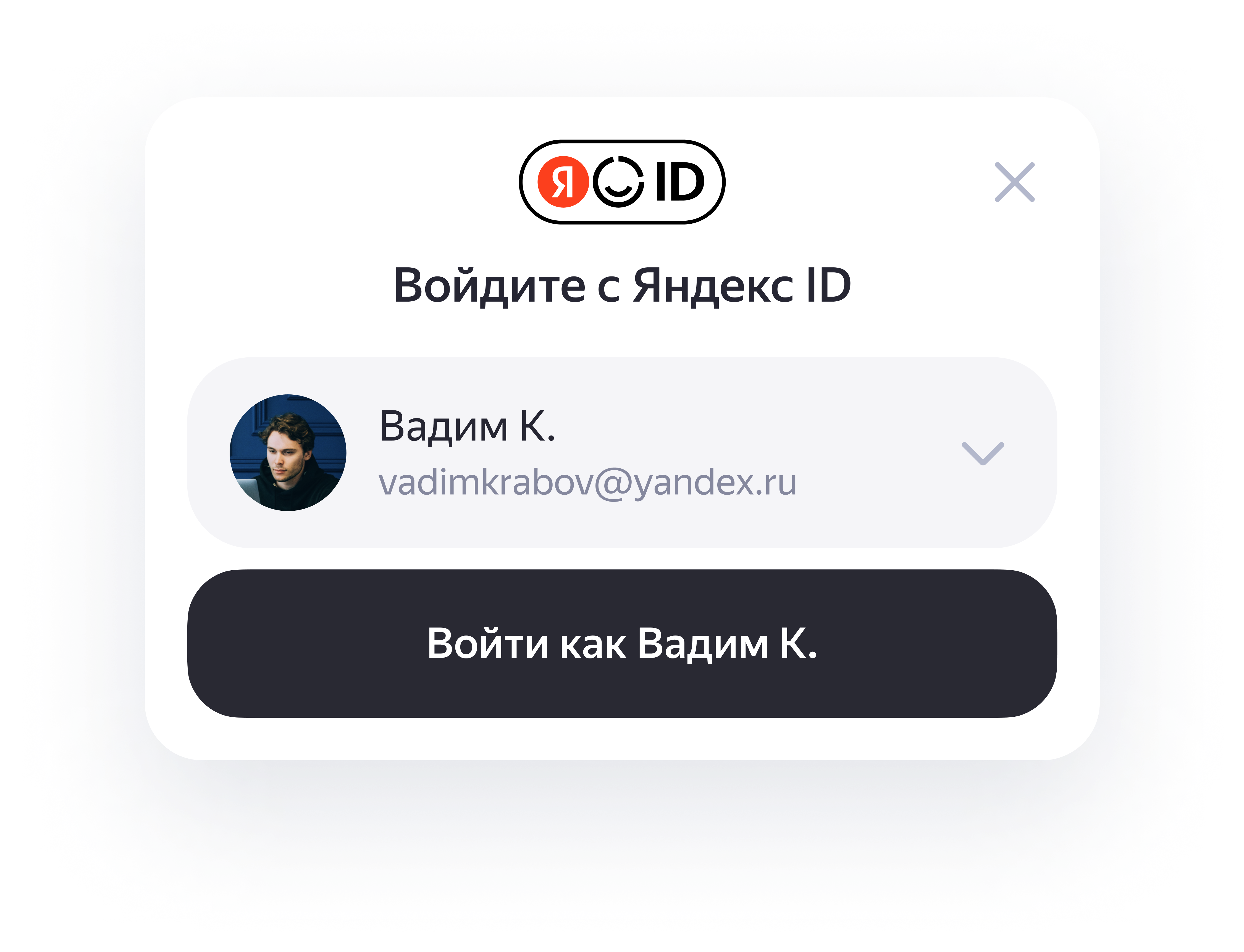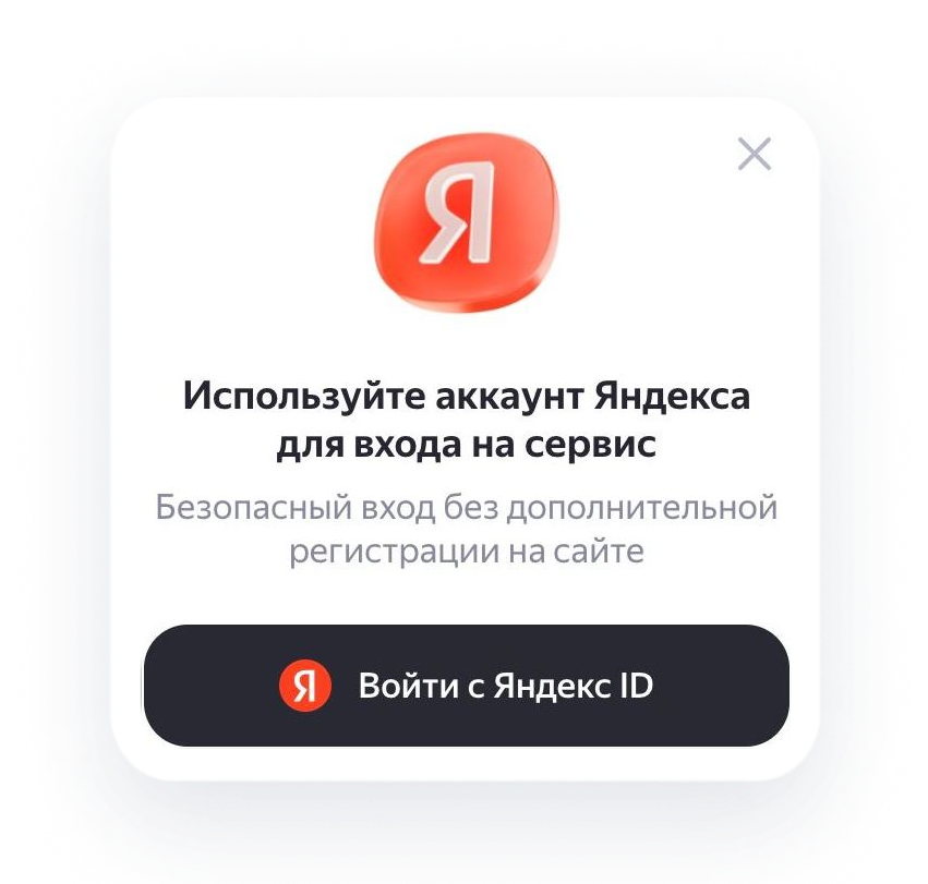 Виджет "Мгновенный вход" — это всплывающее окно на вашем сайте, в котором пользователь сможет выполнить вход со своей учетной записью на Яндексе.