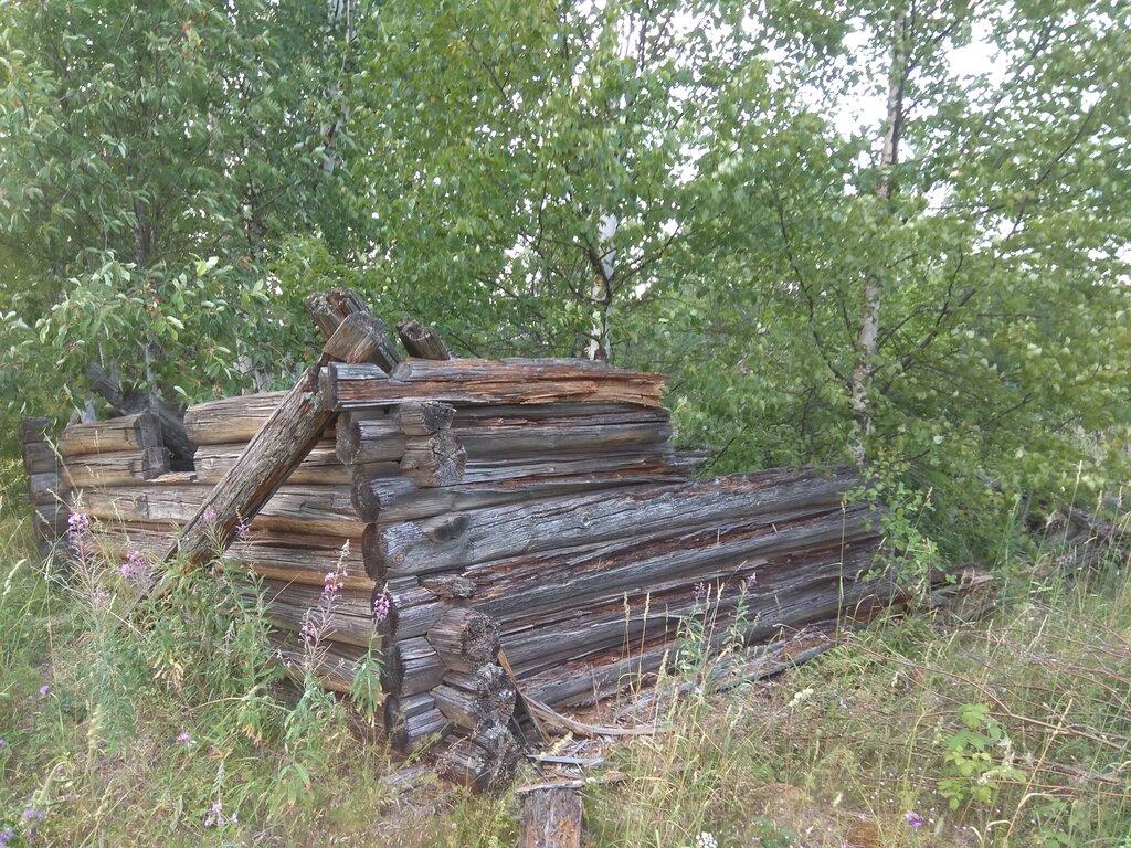 Храм разрушился, осталось немного бревенчатой кладки