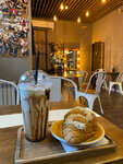 Harika bir kafe, çok çeşitli kahve, diğer içecekler ve tatlılar. Frappuccino ve bademli kruvasan aldım, çok hassas ve hamur işlerinin taze olduğu açıkça görülüyor. İki kibar barista kıza çok teşekkür ederim, çabucak sipariş verdiler ve bir içki önerdiler.