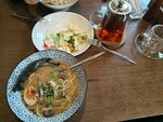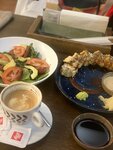 Довольно большой выбор различных блюд: азиатской, итальянской, русской кухонь, много десертов, большой выбор чая, понравился чай с липой и мятой, очень освежает. Приятный интерьер, порции достаточно большие, принесли все быстро))