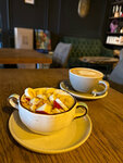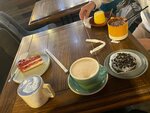 Персонал из двух девочек, которым видимо запретили частые перекуры, был довольно грубым и неприветливым Цены уровня нецентральной Москвы, интерьер прикольный, понамешано всего и сразу для тех, кто не разбирается в теме дизайна и хлеб с маслом красиво. Голубая матча встала порошком в горле и отказывалась идти дальше. Могу похвалить возможность выбора безлактозного молока и освещение, за это и две звезды… Интернета нет, в общем и целом, всё для мамашек с детьми, и тем кому ничего особо не нужно. Потенциально хорошее хипстерское кафе, заходить больше не буду, но послежу, что с ним станется.