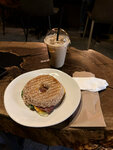 Монстр снаружи, милахи внутри. Прекрасная кофейня в центре города с широким выбором напитков, вкусными десертами, в том числе веганскими и raw, уютным и стильным интерьером и приветливым персоналом. Вывеска и первое визуальное впечатление действительно вызывают какие-то брутальные ассоциации. Но в данном случае первое впечатление обманчиво. И даже бариста, каких бы внушительных размеров они не были (в случае парней) и сколько татуировок не покрывало бы их - все очень дружелюбные и отзывчивые ребята. Кофе варят вкусный - любой кофеман оценит по достоинству и качество самого кофе и ассортимент сиропов и топпингов. В продаже, как и в любой современной кофейне, есть сэндвичи и другие несладкие перекусы. Отдельно стоит отметить интерьер, располагающий к продолжительным посиделкам хоть в компании, хоть наедине с ноутбуком или книжкой. Книжки, кстати, расположились в глубине зала на стеллаже с дровами. Тут нельзя не сказать, что при виде дров невольно начинаешь шарить глазами по залу в поисках камина, но, увы, его либо прячут до зимы, либо он отсутствует вовсе. А был бы весьма кстати в такой обстановке, пусть даже бутафорский. Короче говоря, кайфовое местечко, рекомендую!