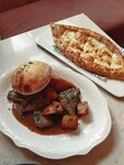 Rahat bir yer. Çok fazla koltuk, hatta çok fazla koltuk var. Yiyecek: 5 'te Khachapuri Sığır eti ile Sachtava, 4 için. Tuzlandık. Yunan salatası 5için lezzetli. Tatlı çok lezzetli ve servis orijinal. Ayrıca 5'te. Fiyatlar ortalamanın biraz üzerinde.