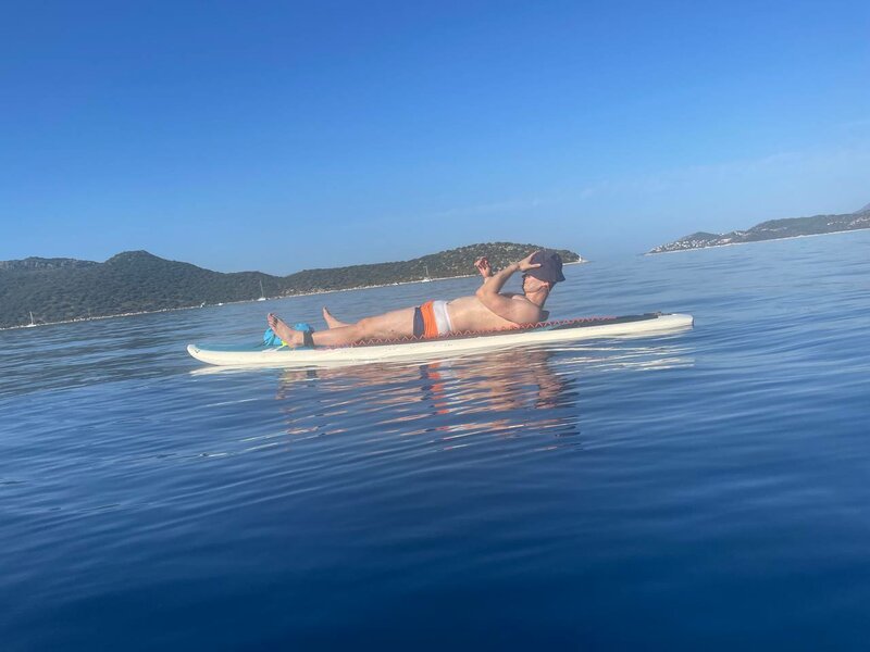 Арендовали сапы в Каше у Анны с пляжа Бююк Чакыл (по совету нашего арендатора также Анны) нам очень понравилось! Очень рады, что организовались) Оперативная связь в телеграмме о погоде на море, чтобы не было волн🙏🏻 и по другим вопросам. Аренда прошла легко: На пляже встретил "парень в оранжевой футболке по имени Тайфун" (красивая цитата из переписки), всё объяснил на английском, всё показал, убедился, что поняли, посоветовал где можно увидеть черепаху, как держать весла, объяснил почему не следует отплывать далеко от берега, дабы не было проблем с береговой охраной, где поберечься камней и тд. Вежливо и успокоительно, обожаю! Помог залезть и отправил в плавание) Доска была в хорошем состоянии, а море спокойное — кататься было приятно. 2 часа прошли не заметно и мы очнувшись по среди пути заспешили назад против волн 🙈 так что ставьте таймер) Также нам дали гермомешок для телефончиков и доков, что невероятно, кстати. А еще одолжили по просьбе две маски 🙏🏻 когда вернулись, в еще бОльшую радость поигралась с псом Тайфуна🤍 Если будете в Каше, обязательно попробуйте взять SUP у Анны — это отличный способ отдохнуть на воде и увидеть красоту побережья!